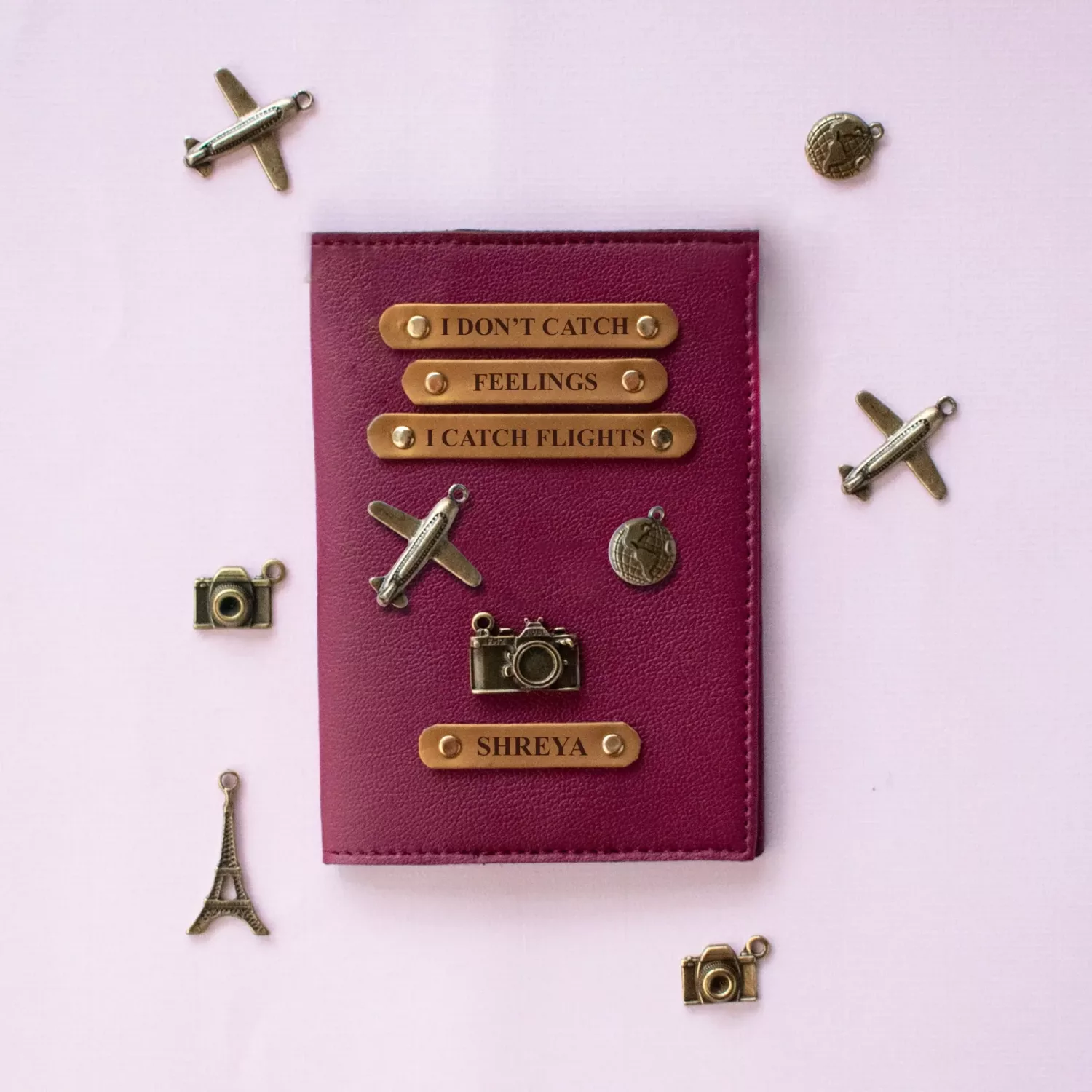Our Personalized Passport Cover blends fashion and function seamlessly, making it a must-have for all travelers. Its inspiring message “I Don’t Catch Feelings I Catch Flights” serves as a constant reminder of your wanderlust spirit.